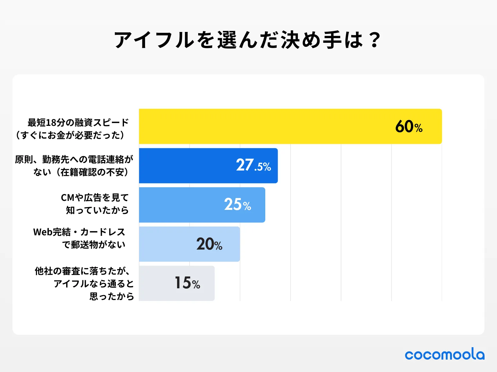 他社の審査に落ちたが、アイフルなら通ると思ったから | 15% |