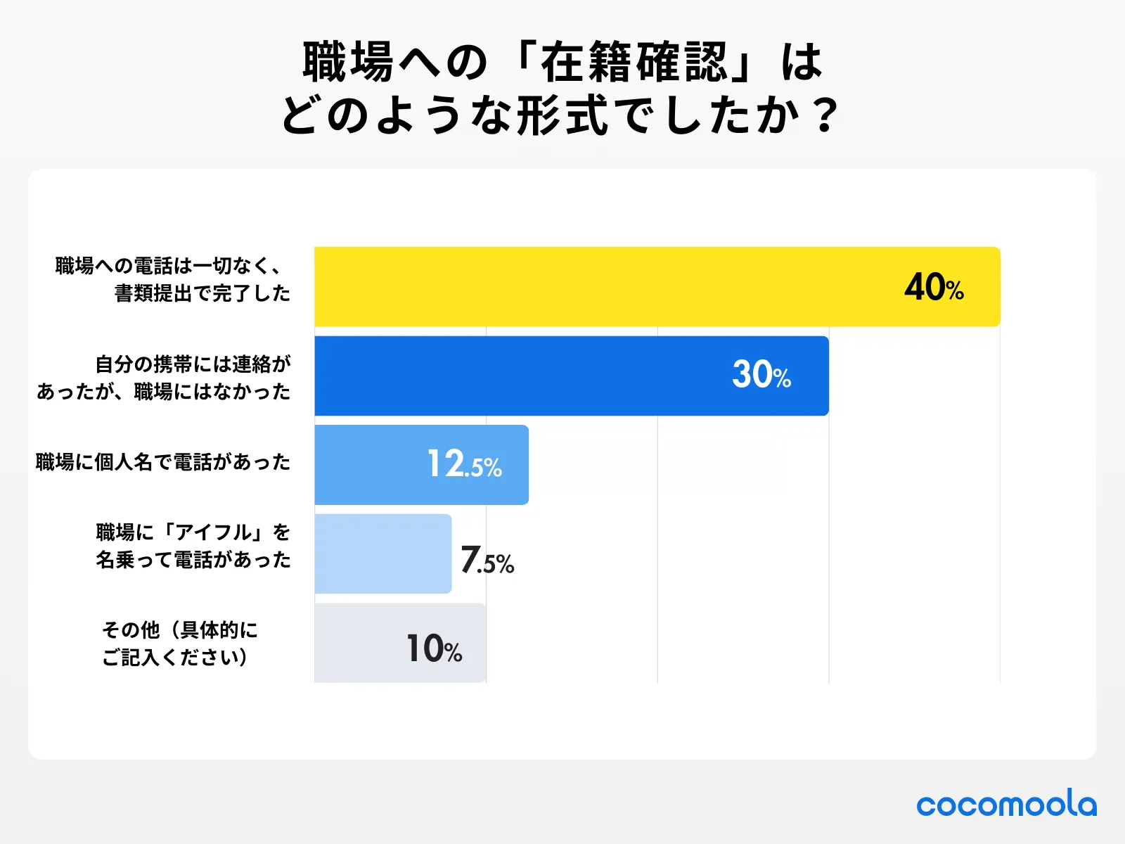 職場への電話は一切なく、書類提出(給与明細や社員証)で完了した | 40% |