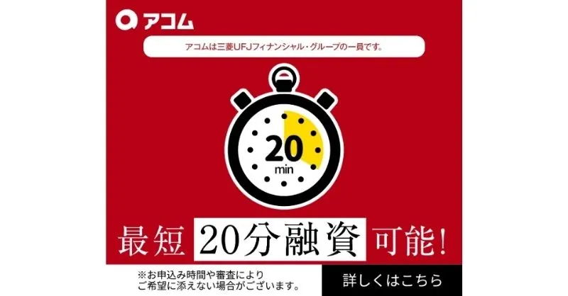 アコムは即日融資に対応しており、最短20分での借り入れが可能です。※