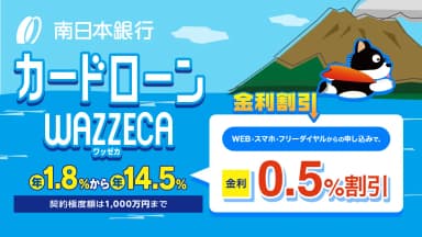 | カードローン | 引用元:公式サイト ![]() 大垣共立銀行カードローン | 引用元:公式サイト ![]() 南日本銀行カードローン「WAZZECA(ワッゼカ)」 | 引用元:公式サイト ![]() 十六銀行カードローン「Q-LOAN」 | 引用元:公式サイト ![]() トマト銀行カードローン「キューリ」 | 引用元:公式サイト ![]() 島根銀行「しまぎんカードローン」 |