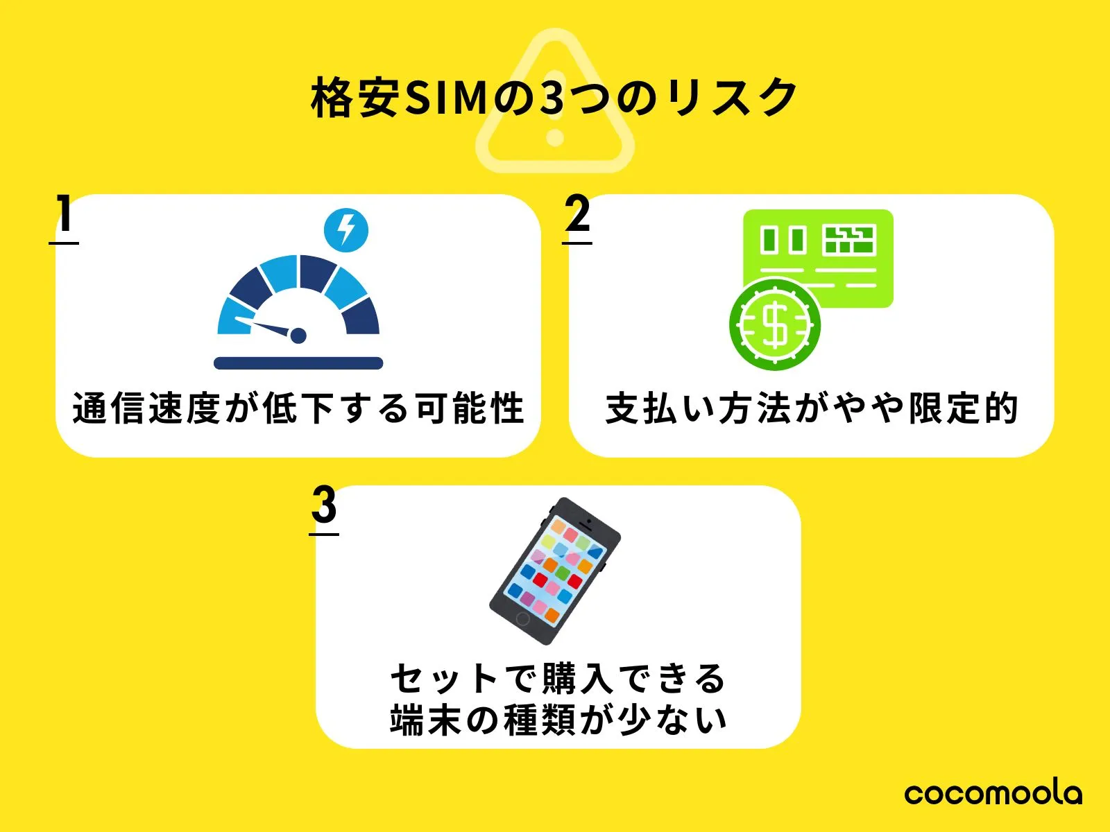 「安い料金プランが豊富にある」「手軽に乗り換えられる」など、一見利用者にとってメリットしかないように思えますが、以下のデメリットもあるので、契約しようか迷っている方はそれぞれ確認してみてください。
