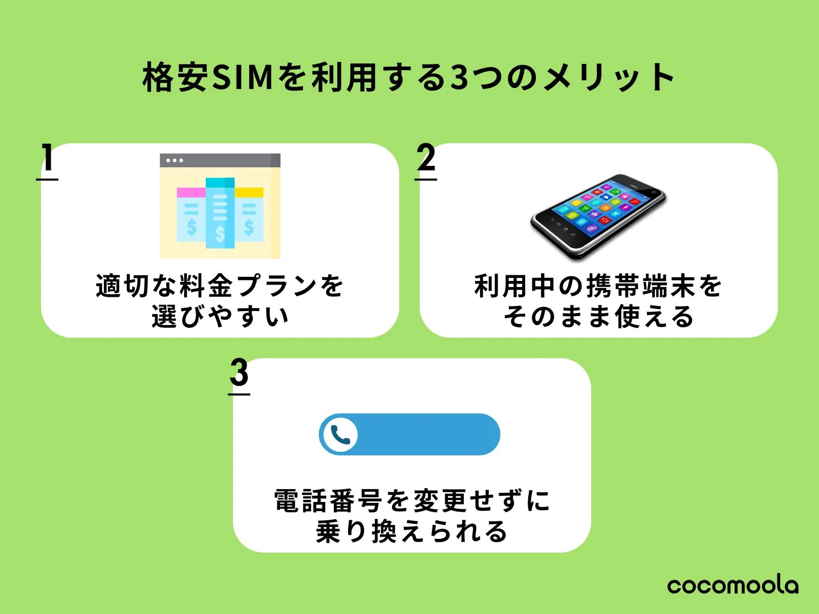 新たにSIMフリーの携帯端末を購入する必要はないので、毎月の携帯料金を少しでも安くしたい方は、ぜひ格安SIMへの乗り換えを検討してみてください。
