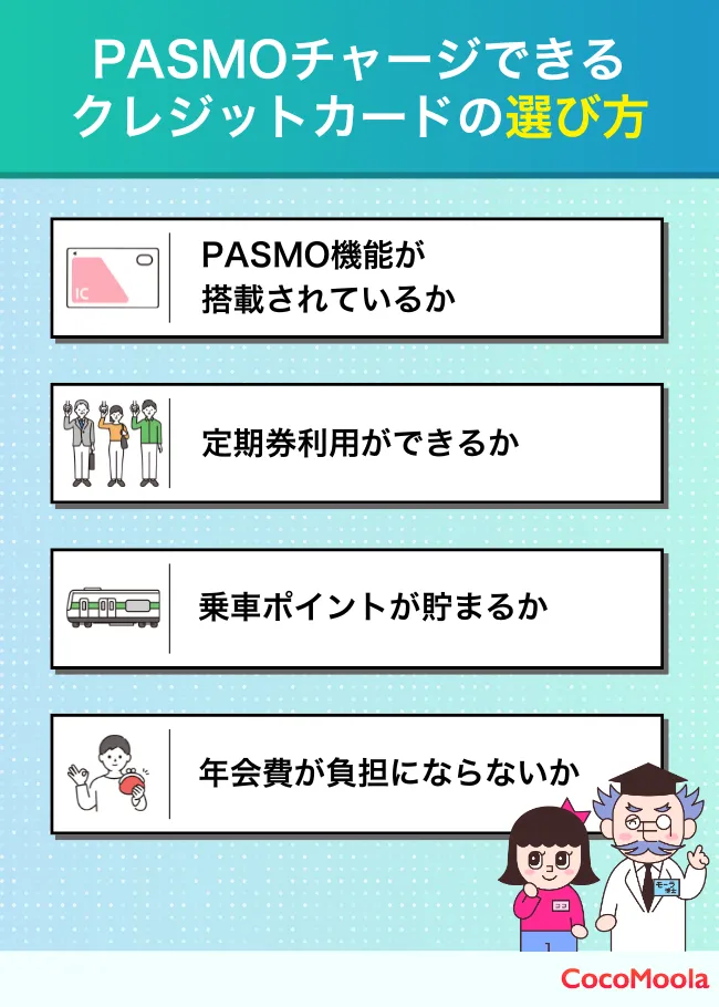 そこで本記事では、PASMOチャージと相性の良いおすすめのクレジットカードを厳選してご紹介します。さらに、選び方のポイントや注意点、メリットなども解説しているので、普段からPASMOを現金でチャージしている方はぜひ参考にしてみてください。