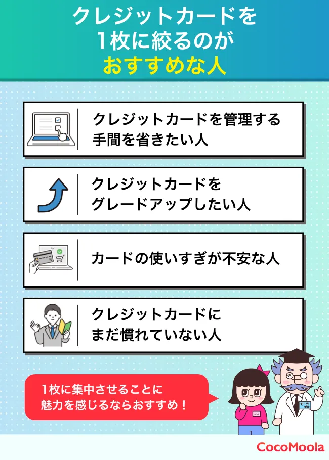 クレジットカードを厳選して1枚に絞るのがおすすめな人の特徴を紹介します。
