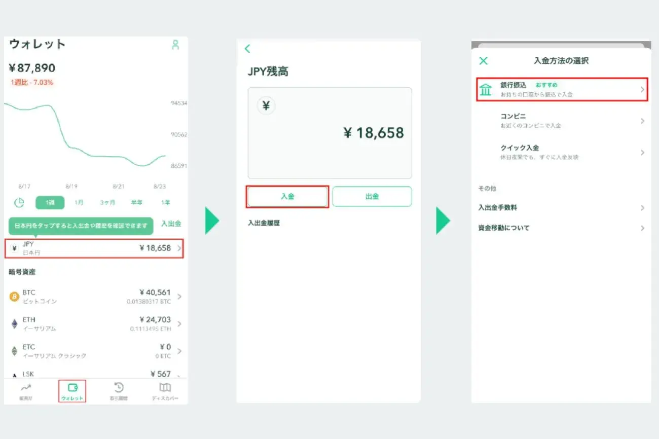 なお、仮想通貨取引所の主な入金方法には以下の3つがあります。