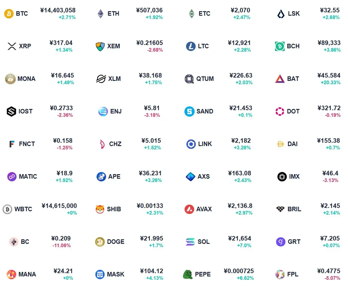 販売所にアクセスしたら、取引する銘柄を選びましょう。