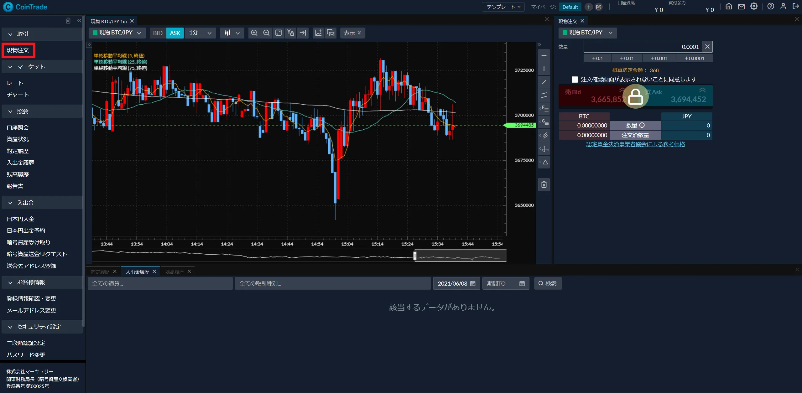 CoinTrade(コイントレード)のPC版取引ツールでは、チャート分析や描画機能といったスマホアプリにはない機能が搭載されています。