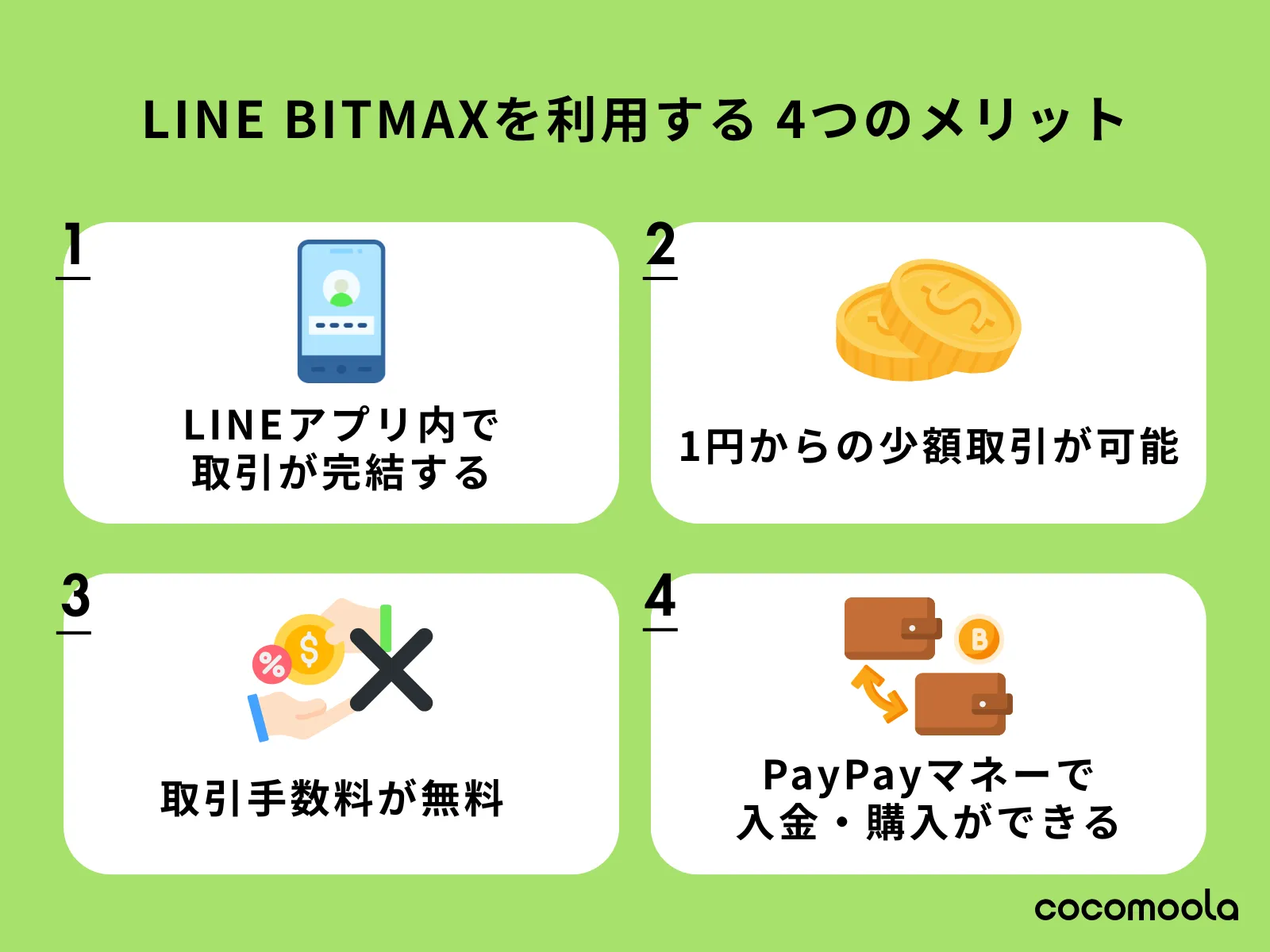 LINE BITMAXには多くのメリットがありますが、ここでは特に重要な4つに絞って詳しく解説します。