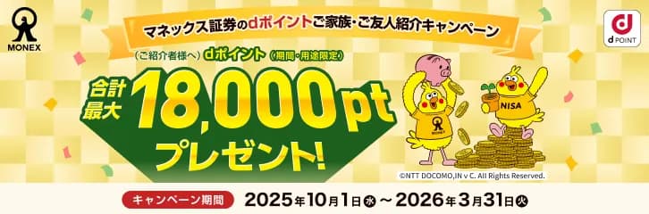 マネックスで暗号資産取引をするにはまず証券総合取引口座を開設する必要がありますが、その際、家族や友人を招待するとdポイントがもらえるキャンペーンが開催中です。