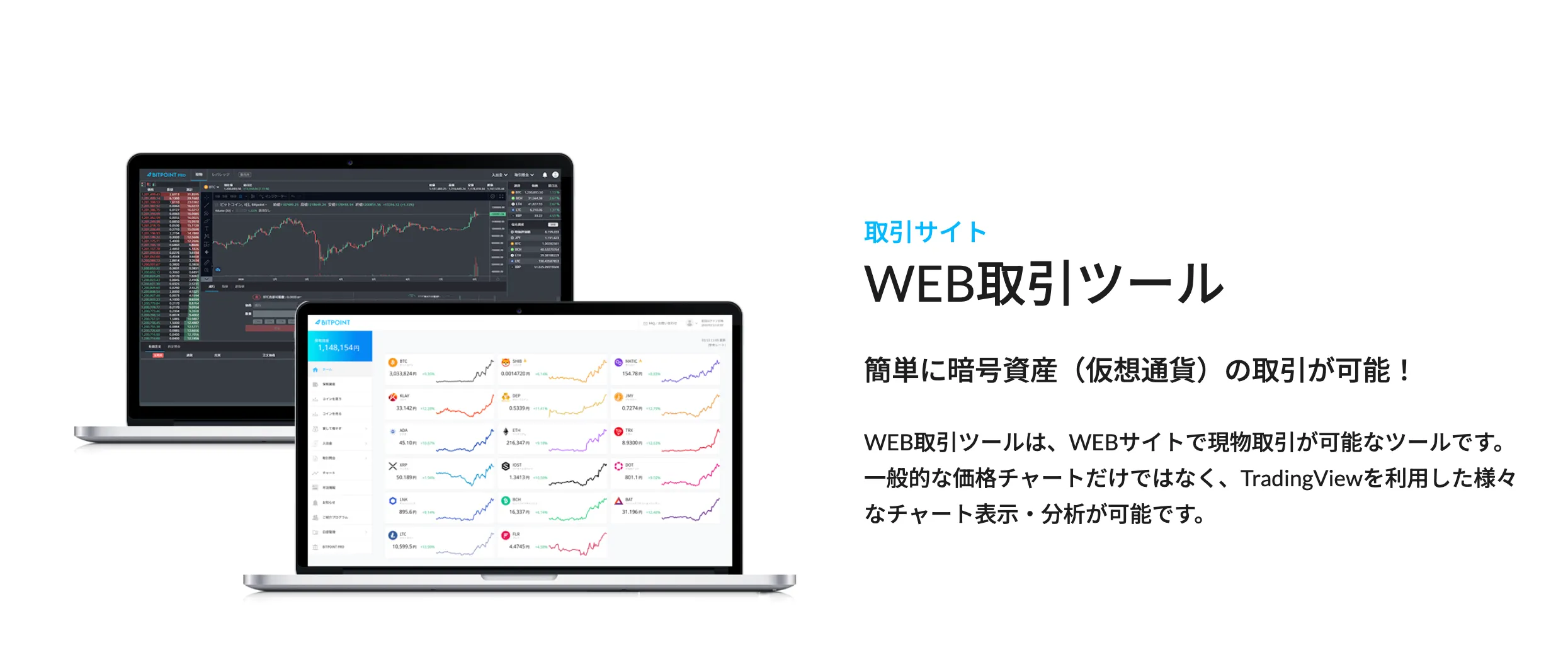 BITPOINTのPC用チャートツールは「BITPOINT」と「BITPOINT PRO」の2種類からモードを選択できるため、初心者から上級者まで幅広いトレーダーにおすすめできます。