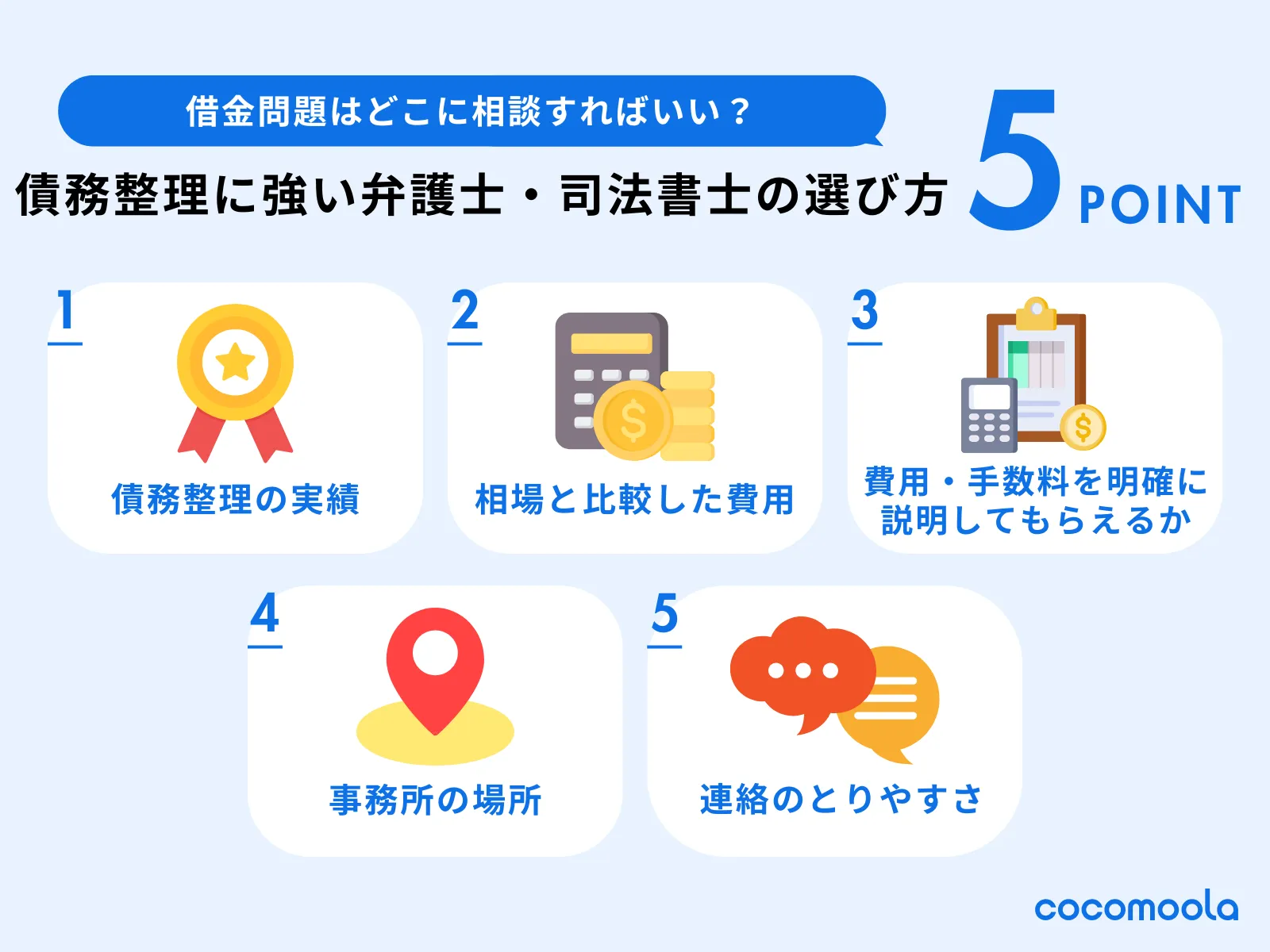 ここでは、債務整理に強い弁護士・司法書士事務所の選び方を解説します。