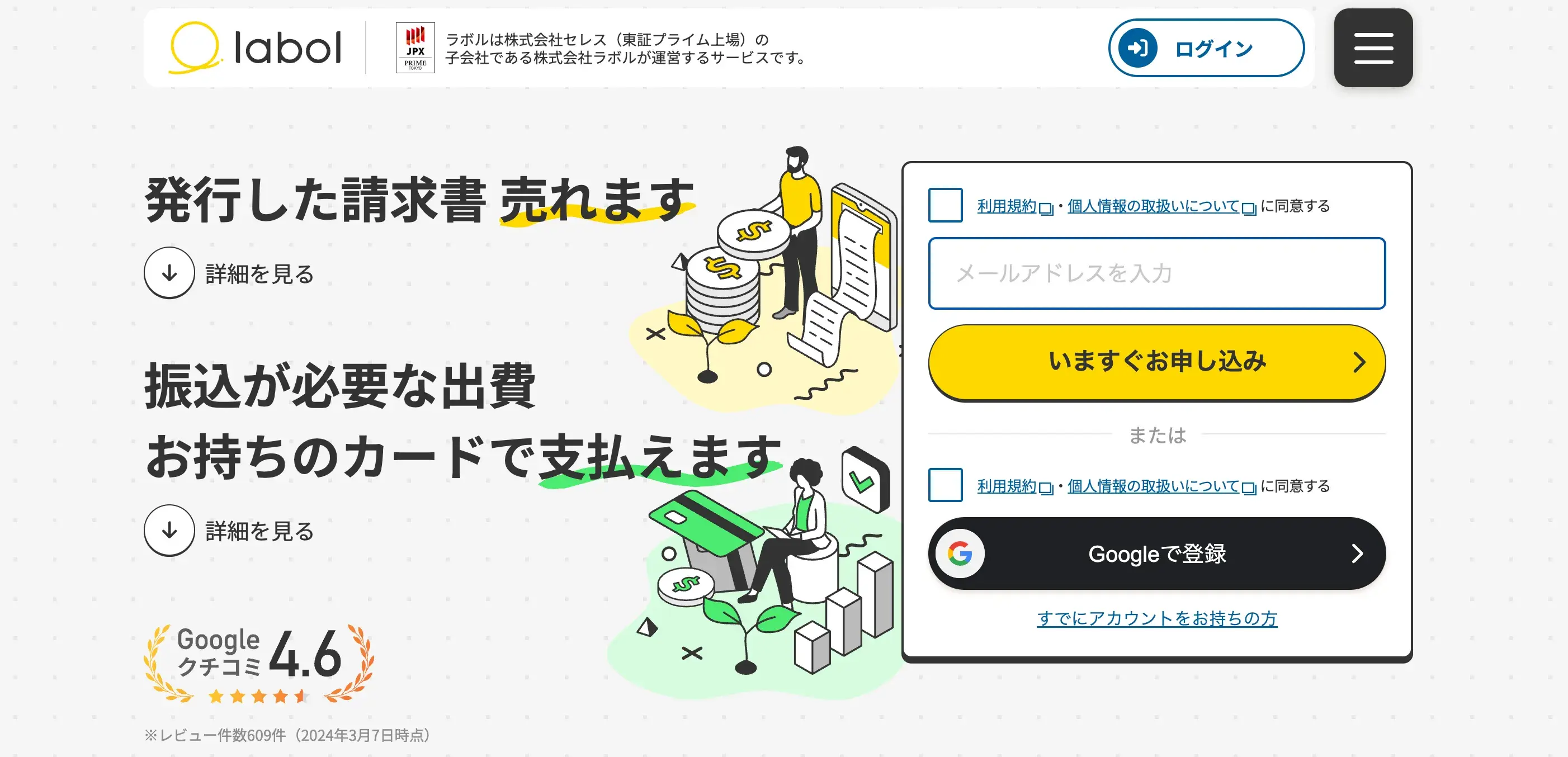 ラボルは、フリーランスや個人事業主向けに特化した「請求書買取サービス」として人気のサービスです。少額利用がしやすく、スマホで簡単に手続きできる便利さが高く評価されています。