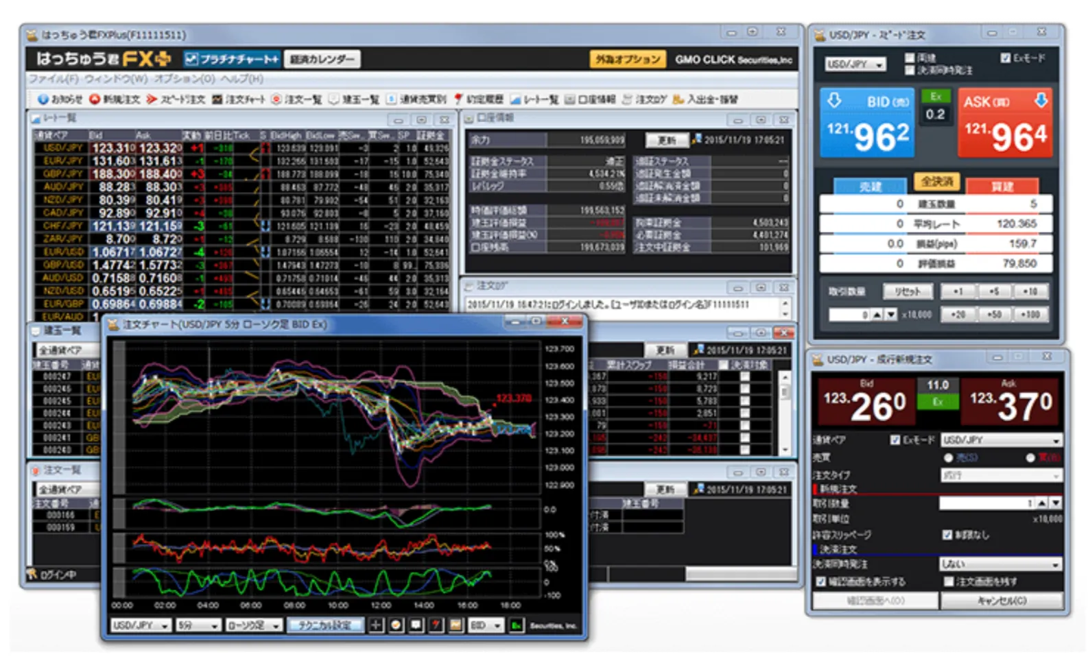 GMOクリック証券のPC専用ツール「はっちゅう君FXプラス」は、スピードと操作性を追求した高機能ツールです。
