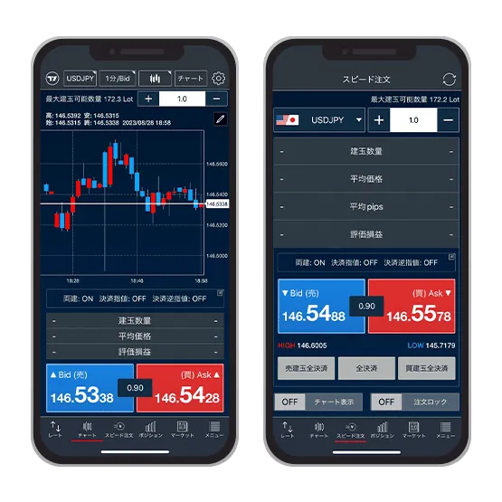 ┗ワンタップで新規・決済注文ができるスピード注文機能を搭載。値動きが激しい相場でも、チャンスを逃さず取引できます。