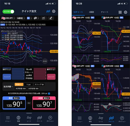 ┗チャート表示をすばやく切り替えたり、ワンタップで発注できたりと、スムーズな操作ができます。