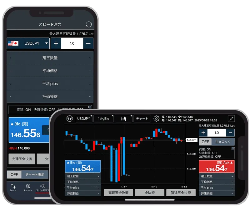 スマホで気軽にFX取引したい人向けのアプリ版です。いつでもどこでもチャートチェックや発注ができます。