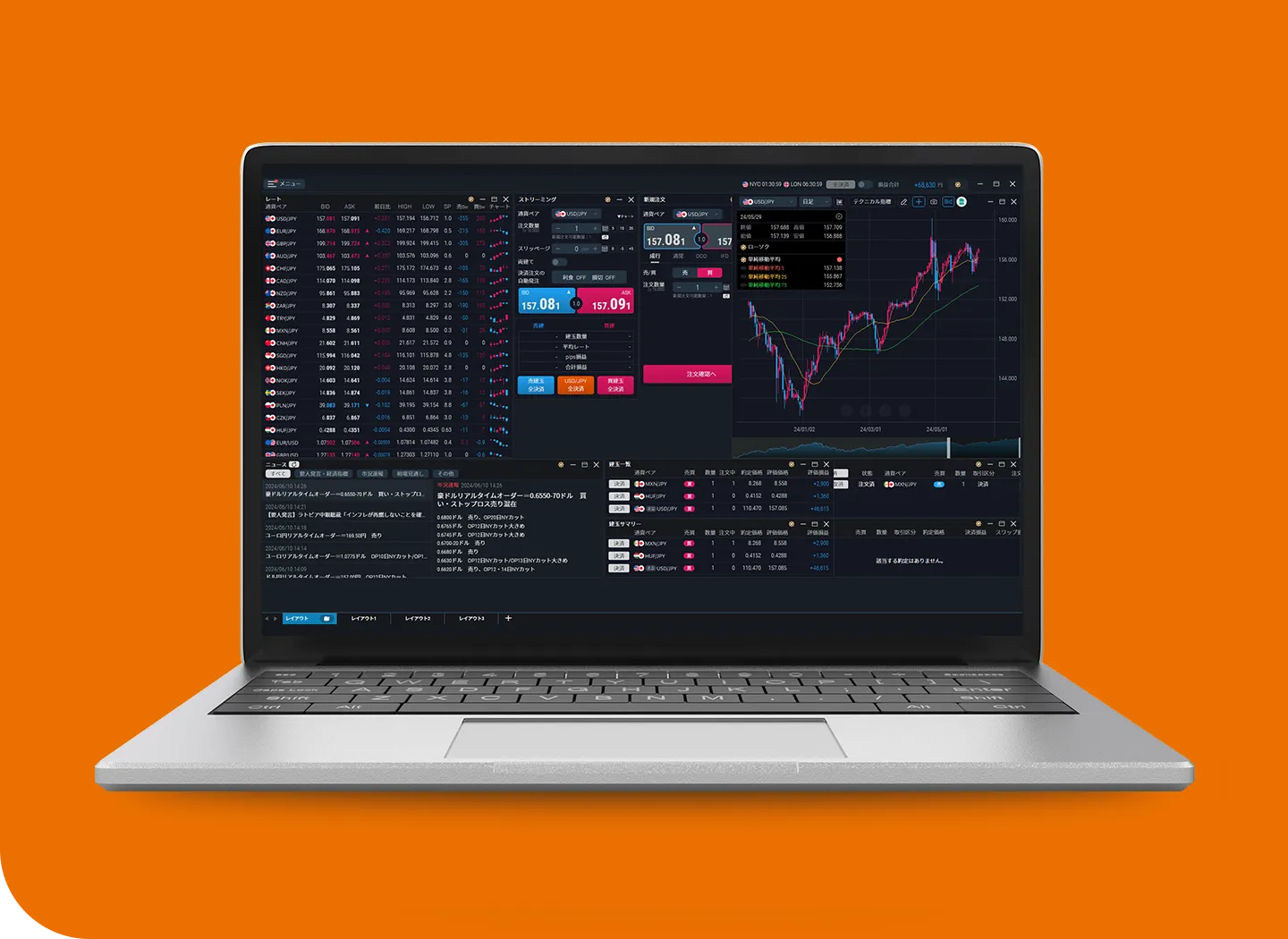 ┗チャート、注文パネル、情報ウィンドウなどを自由に配置でき、自分好みの取引画面を構築できます。