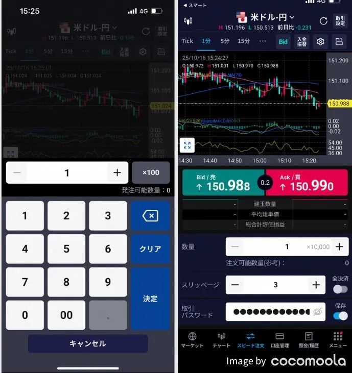 注文に遅延はないが、スピード注文やチャート注文は未対応。