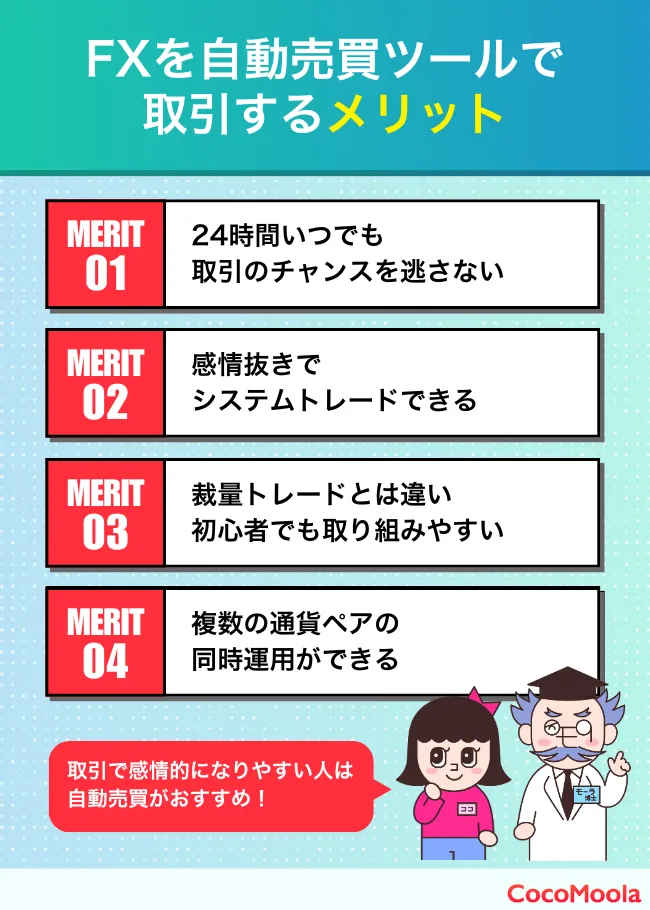 Q. FXを自動売買ツールで取引するメリットは何ですか?