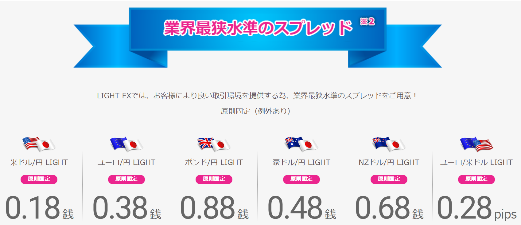 どうしてもスプレッドを狭くしたいなら、LIGHT FXなどで提供しているLIGHTペアが一番安いのかなと思います。