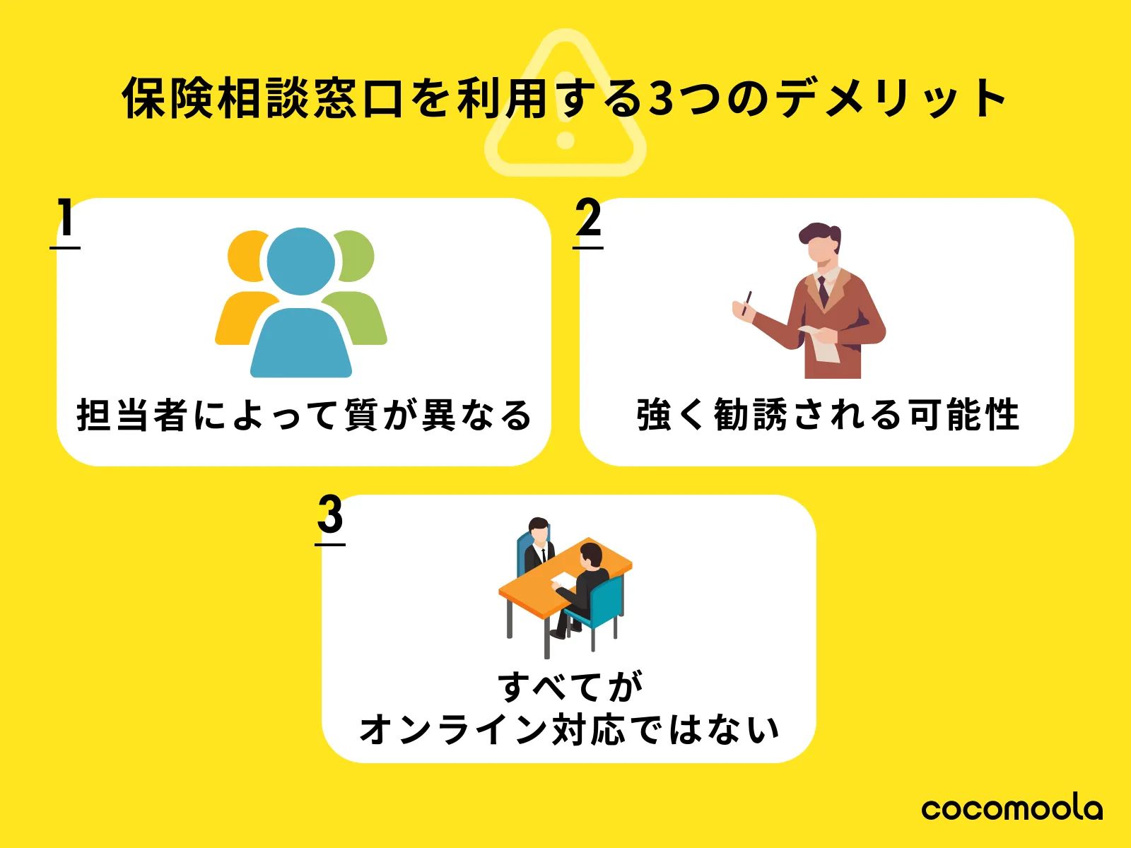 相談窓口は保険会社から支払われる契約手数料で運営されており、その手数料率の高い商品を優先的に勧められるリスクがゼロではありません。