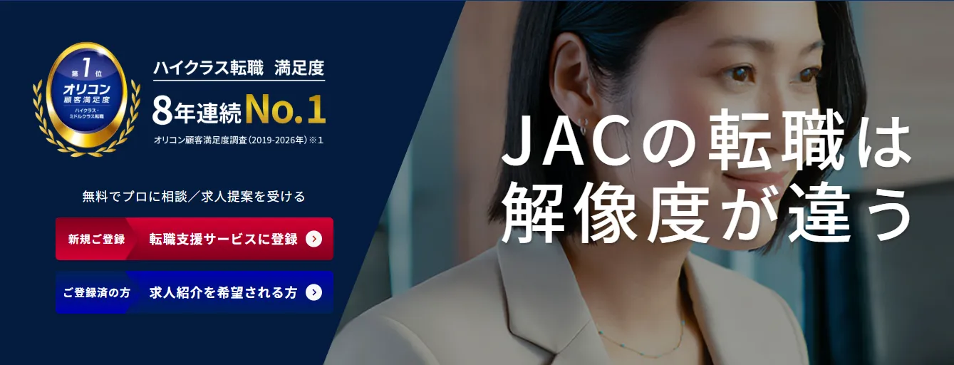 JACリクルートメントは、ミドル〜ハイクラス層向けの転職エージェントとして知られており、特に管理職や専門職、外資系・グローバル企業志向の人から利用されています。