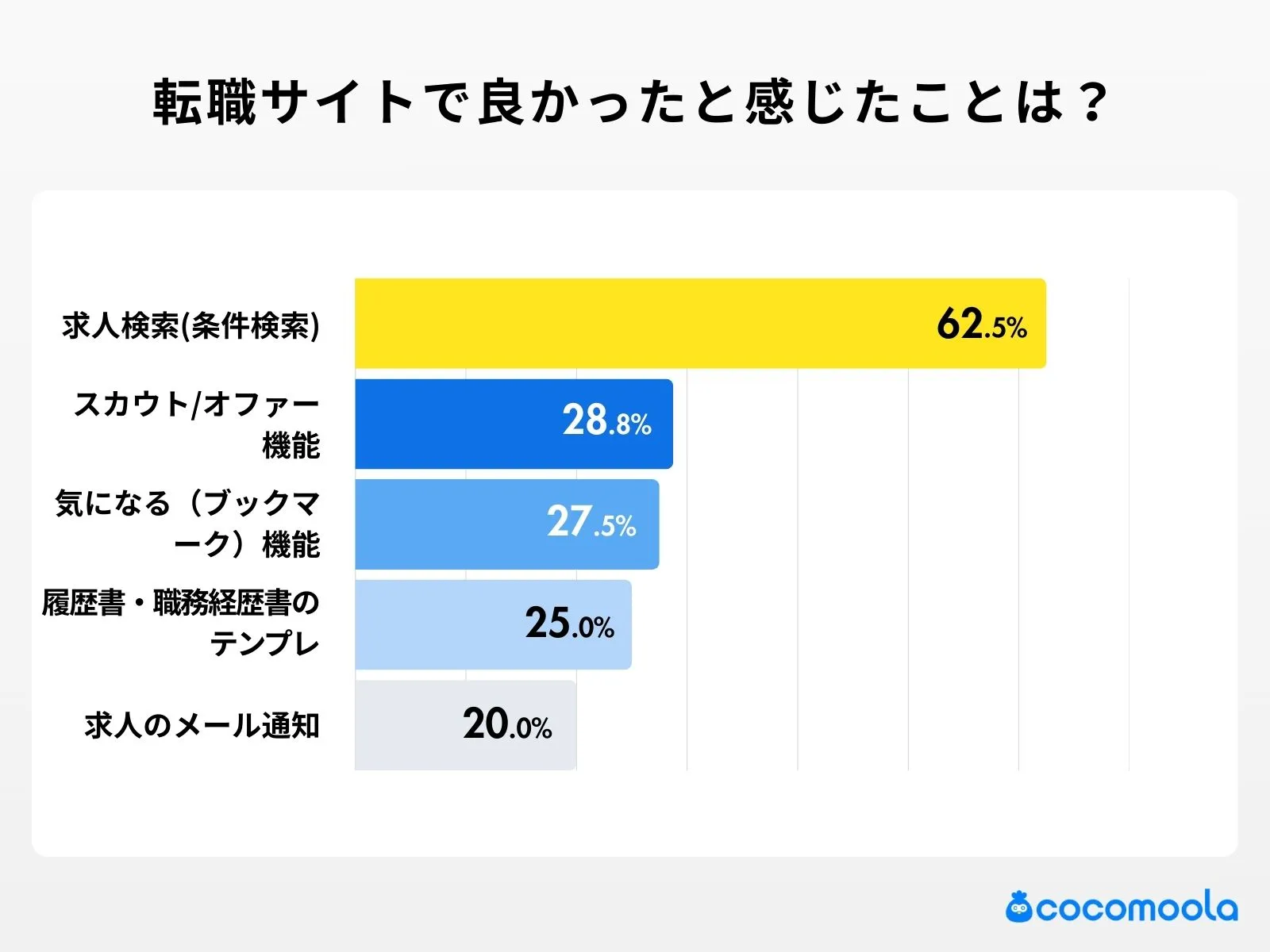 直近5年以内に転職サイトを利用した経験のある20~60歳の男女80人を対象に、実際に利用した転職サイトの良かった点、改善点、全体の満足度などを独自調査しました。