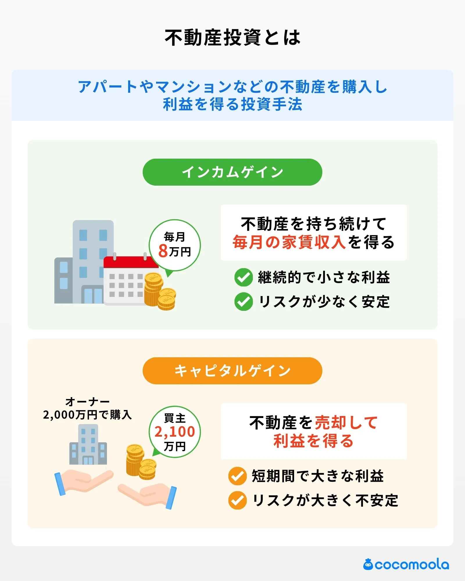 マンション投資とは、ワンルームマンションや区分マンションの一室を購入し、賃貸収入を得ることが主な目的です。