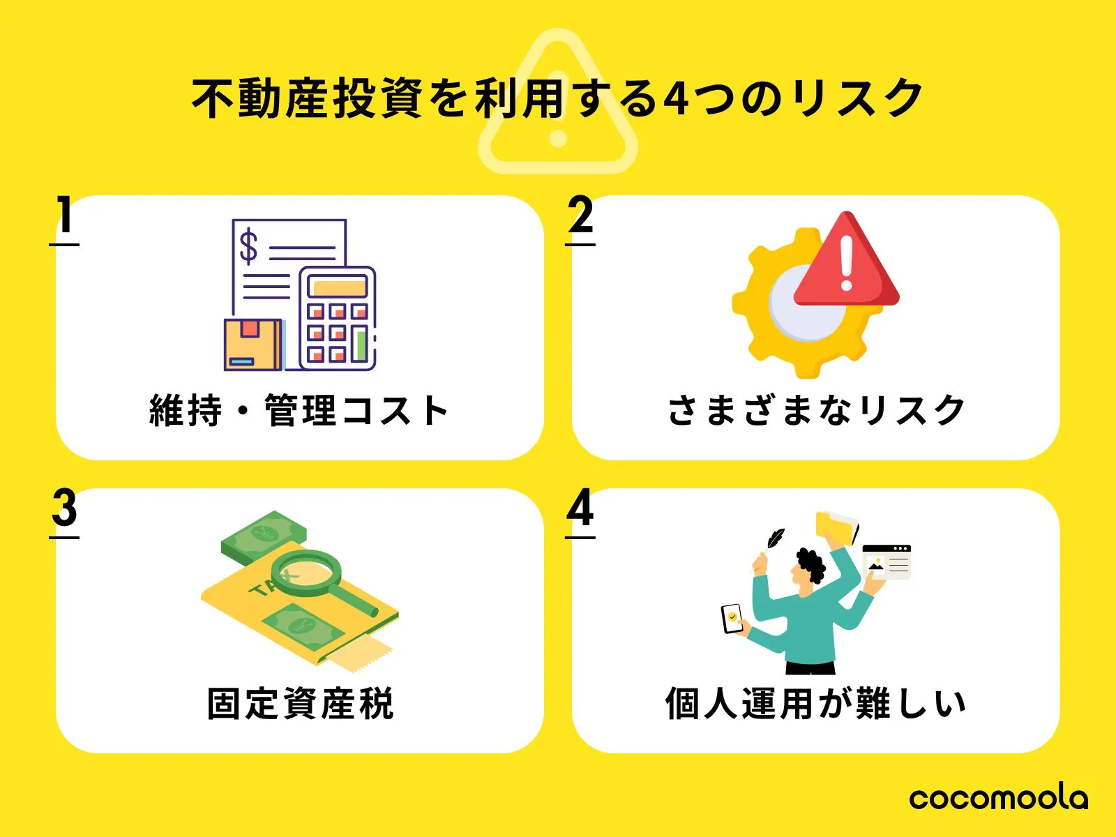 デメリット | ・初期費用が高額で審査難易度が高い ・修繕費用にコストがかかる ・人気のないエリアは入居付けが難しい |
