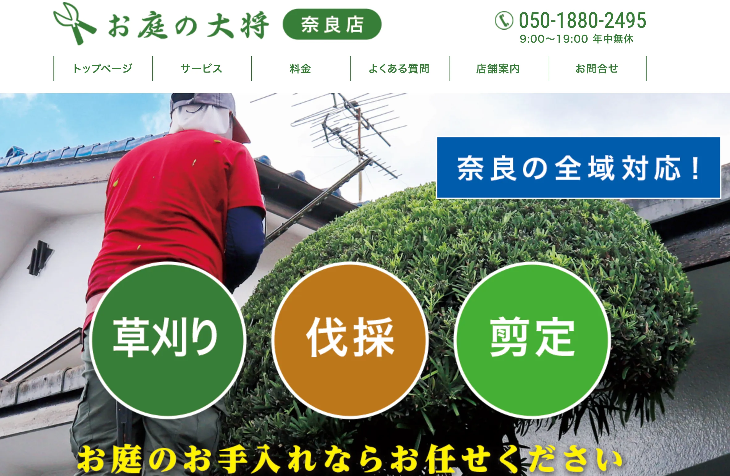 奈良のお庭の大将は草刈り・草むしり・剪定・伐採など、お庭の造園・お手入れ専門店です。空地やお墓の除草・雑草対策もお任せ!