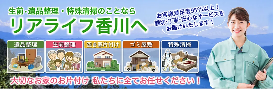 遺品整理士の有資格者が在籍し、遺品整理や生前整理はもちろん、不用品回収、ゴミ屋敷の片付け、特殊清掃、ハウスクリーニングなど幅広いニーズに対応しています。