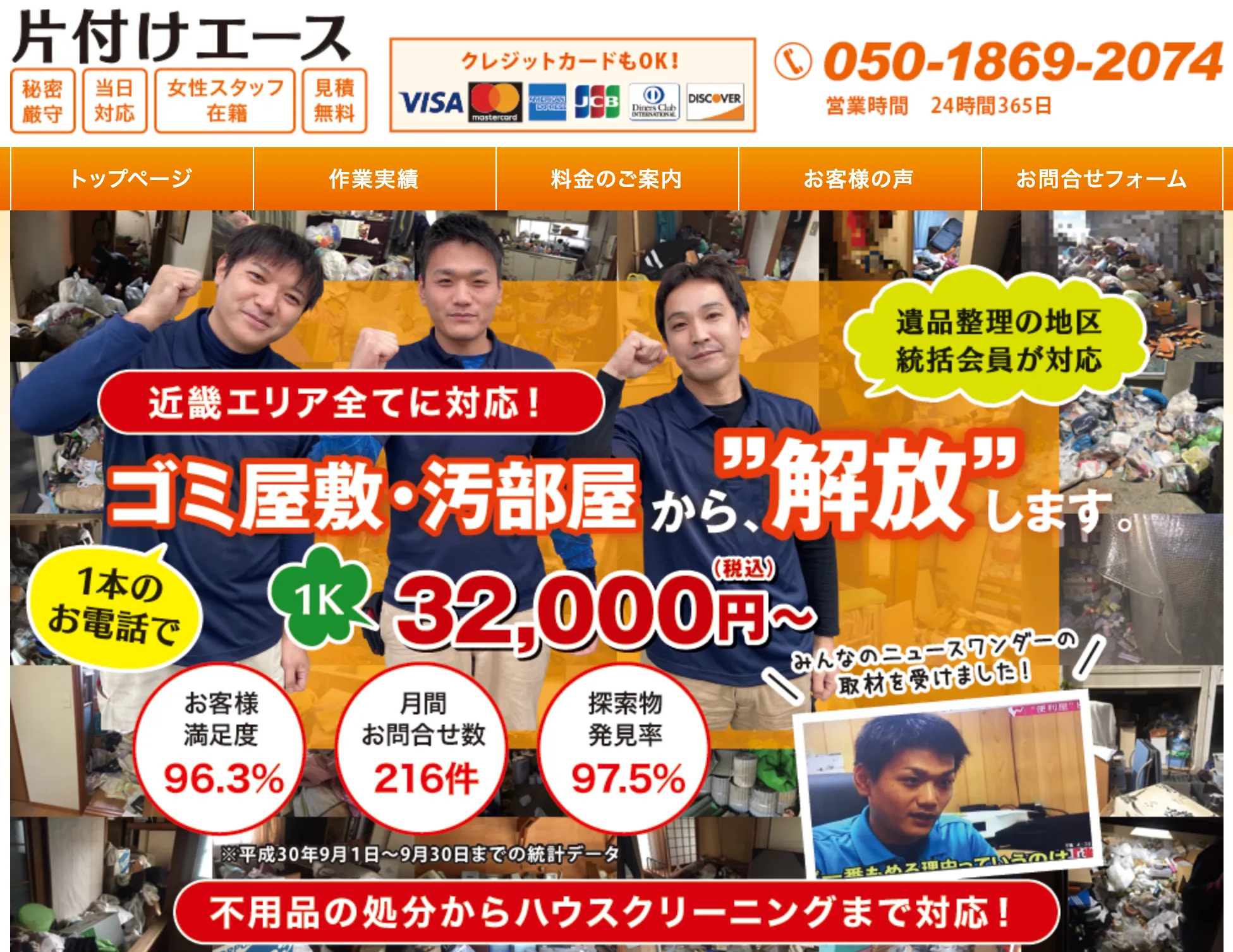 「満足度96.3%」 奈良のゴミ屋敷・汚部屋清掃は片付けエースにご相談下さい。365日営業しており、最短即日対応が可能。電話一本でゴミ屋敷のお悩みを全て解決します