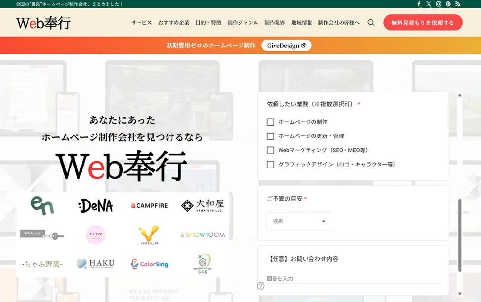 ホームページ制作だけでなく、Webマーケティングやグラフィックデザインまで対応でき、初期費用をかけたくない方向けのサブスク型サービスも提供するポータルサイトです。