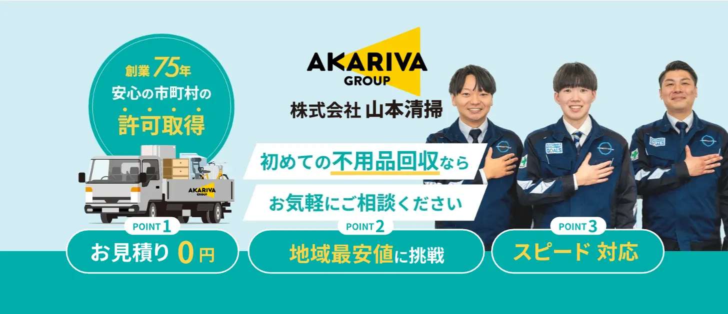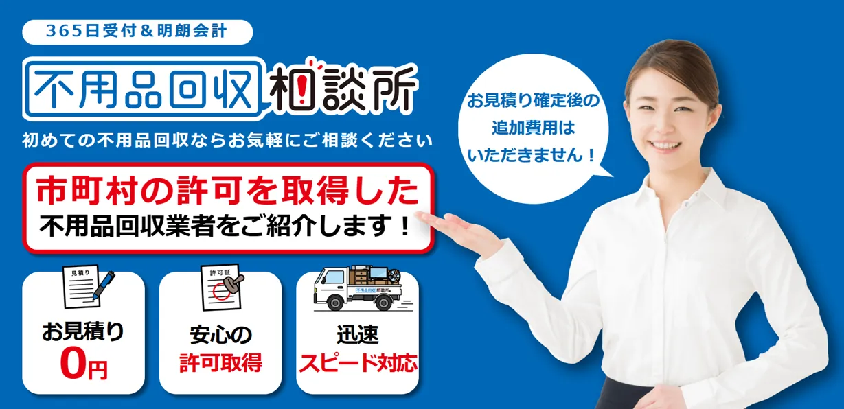 不用品回収、粗大ゴミ処分、ゴミ屋敷片付け、遺品整理、廃品回収など幅広いサービスを展開しています。