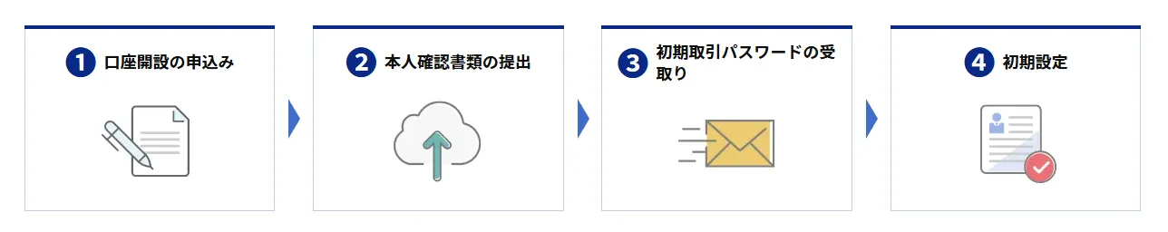 本人確認書類を提出し、審査が完了すると口座が開設されます。初期設定を行い、入金後すぐに取引を開始できます。